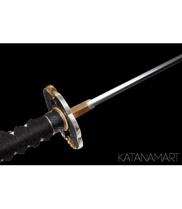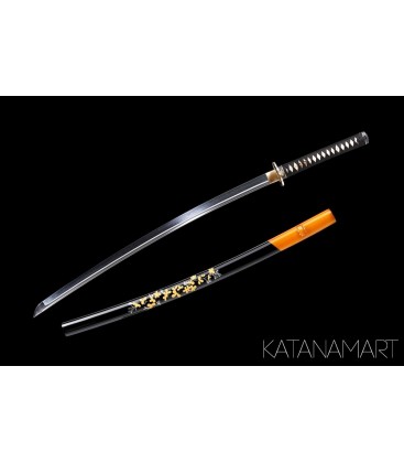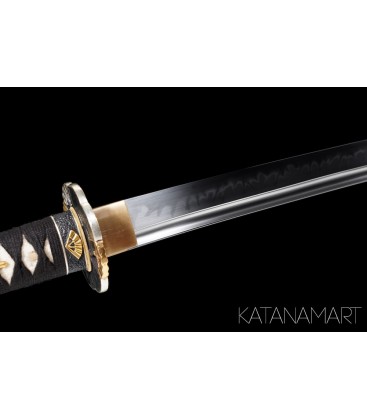Forged for practitioners and collectors, the Kusaka Katana features a maru kitae blade with bohi, made of 1060 high carbon steel. Clay tempered and hand polished, the blade reveals a strikingly visible tōran-midare hamon, a hallmark of authentic craftsmanship. Fully functional and full tang, it is designed for Tameshigiri, Battodo, Kenjutsu, and Ninjutsu, while also serving as an impressive centrepiece for any collection.